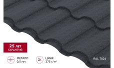 В качестве основы под такое полимерное покрытие используется профилированный стальной лист толщиной 0,5 мм. На него наносится цинк-алюминиевый (Al-Zn) антикоррозионный слой Galfan плотностью 255 г/м2, что соответствует высшему 1 классу по надежности и качеству. После чего металлочерепицу покрывают текстурированным полиэстером с лицевой стороны, а с обратной стороны листа используют гладкий полиэстер толщиной 10 мкм в том же цвете.
