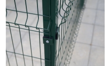 Панели крепятся к столбам с помощью хомутов. При этом гибы секций должны монтироваться по направлению “от столба”. Если требуется смещение по высоте в пролете, то для таких сетчатых элементов используются специальные соединительные клипсы.